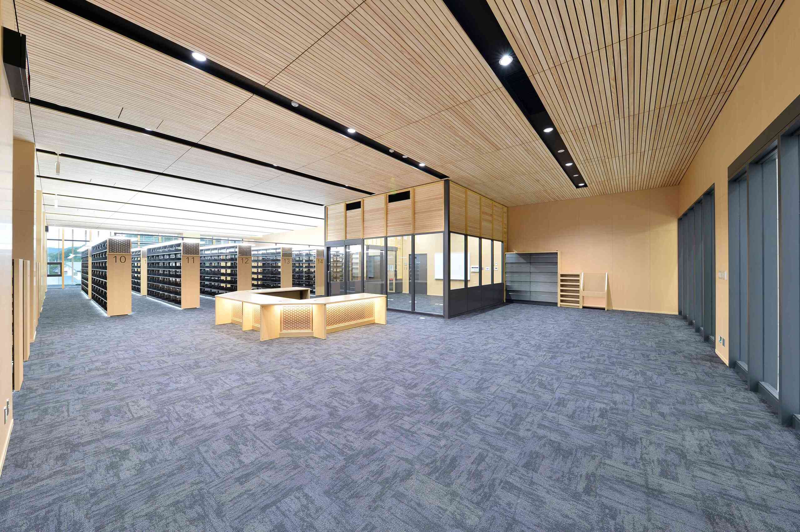 HOME | WORKS13 WORKS一覧に戻る 岩手県K町 交流施設 竣工年月日 2023年7月建設場所:岩手県構造規模:RC造 地上2階 4,323㎡設備概要:地中熱ヒートポンプ+モジュールチラー 太陽光発電 40KWZEBランク:ZEB Ready (BEI値 0.41)受注先:(株)武田菱設計 建物外観(夜景) エントランスホール 図書館